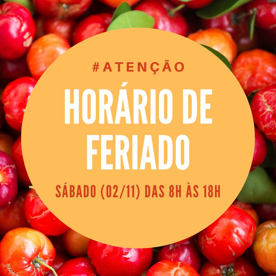 Horário de funcionamento no feriado de 7 de setembro:Sábado, 07 de setembro das 8h às 18hDomingo, 08 de setembro das 8h às 13h e Restaurantes