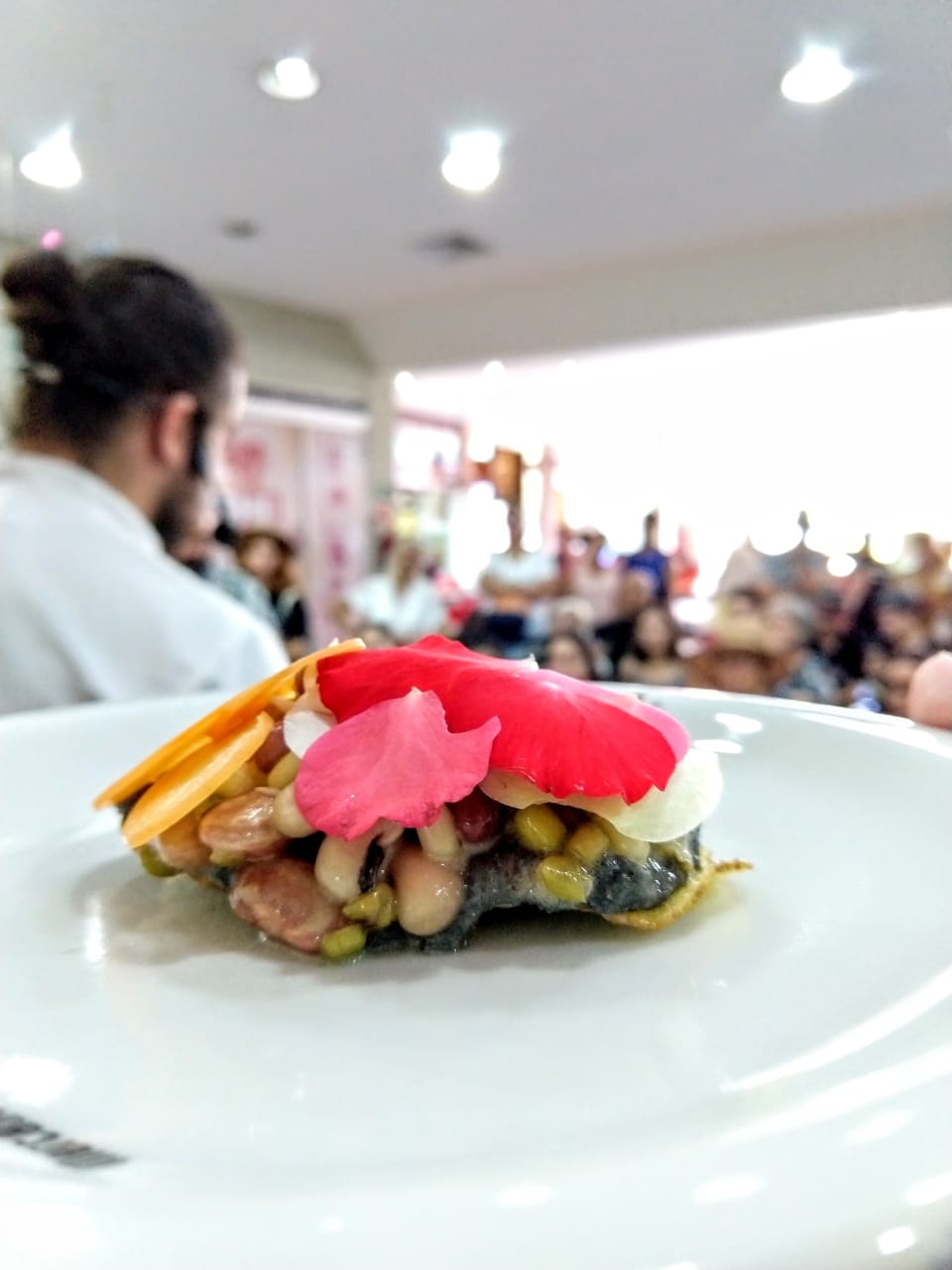 Snack de Grãos Germinados com Hommus Negro, Emulsão de Chipotle e Coco